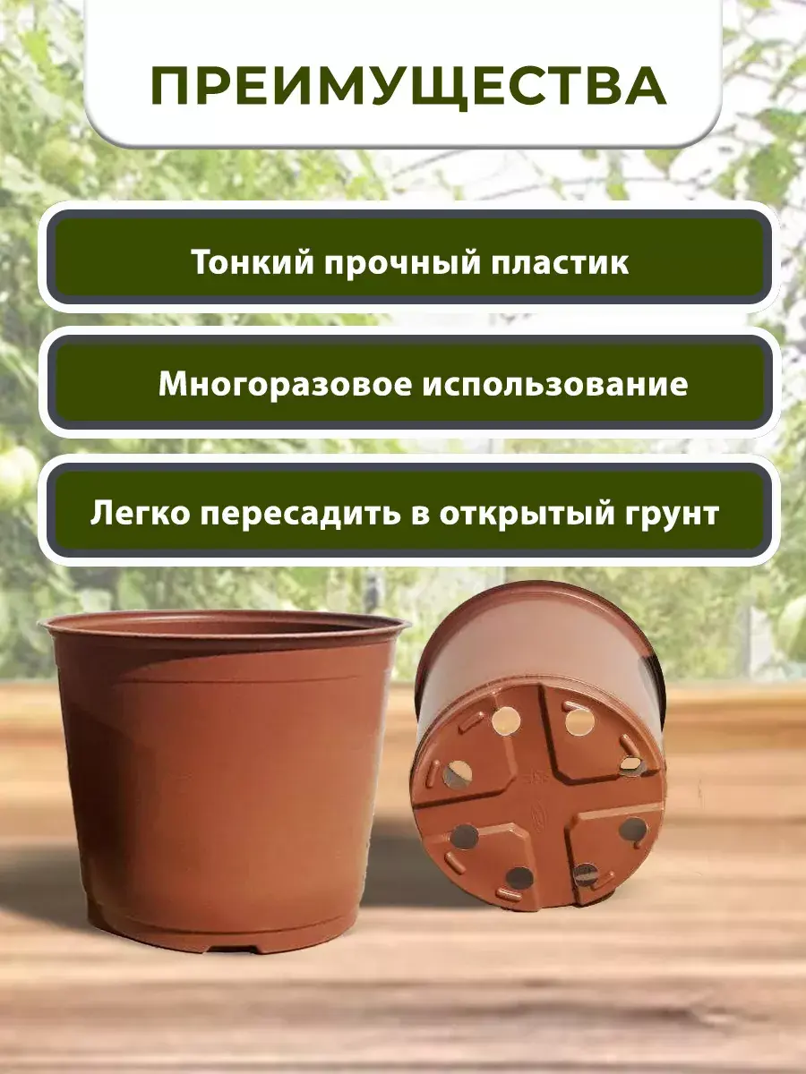 Эти горшки отличный вариант технологических емкостей для выращивания разнообразных растений, включая рассаду, суккуленты, кактусы, фиалки, и другие цветы. Изготовлены из прочного пластика, устойчивы на поверхности и имеют удобный размер. Набор для рассады подходит для выращивания многих видов культур, таких как томаты, перцы, баклажаны, капуста, огурцы, клубника, их также используют любители пеларгоней, герани, фиалок, стрептокарпусов и других культур. Они идеально подходят для создания мини-оранжереи в вашем доме или для украшения вашего уличного пространства.