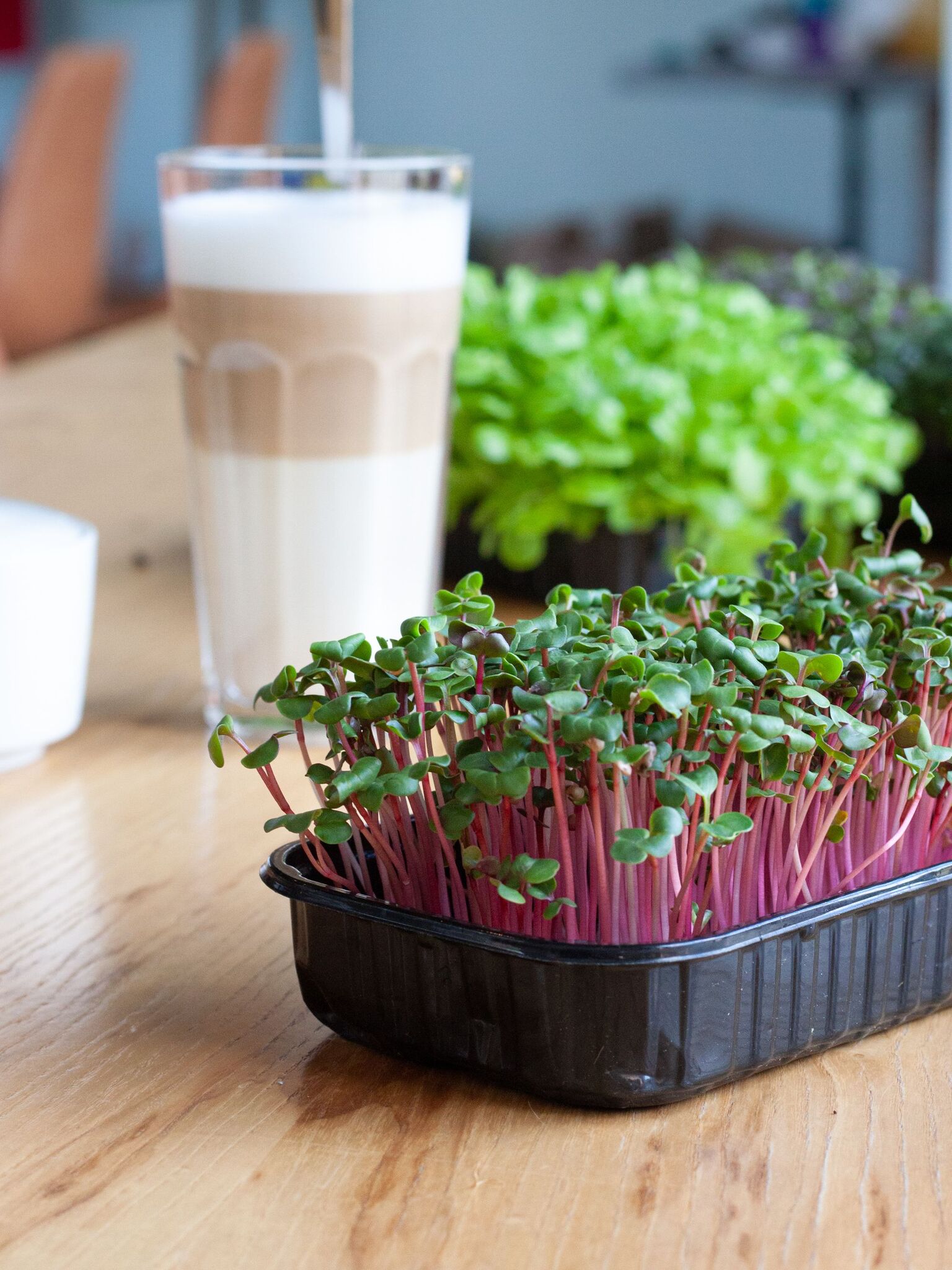 Микрозелень редиса сочная и упругая, имеет слегка острый, приятный вкус. Стоит отметить характерный аромат свежей редиски, который придает блюдам неповторимый вкус. По своим вкусовым качествам отлично сочетается с белковыми продуктами.
